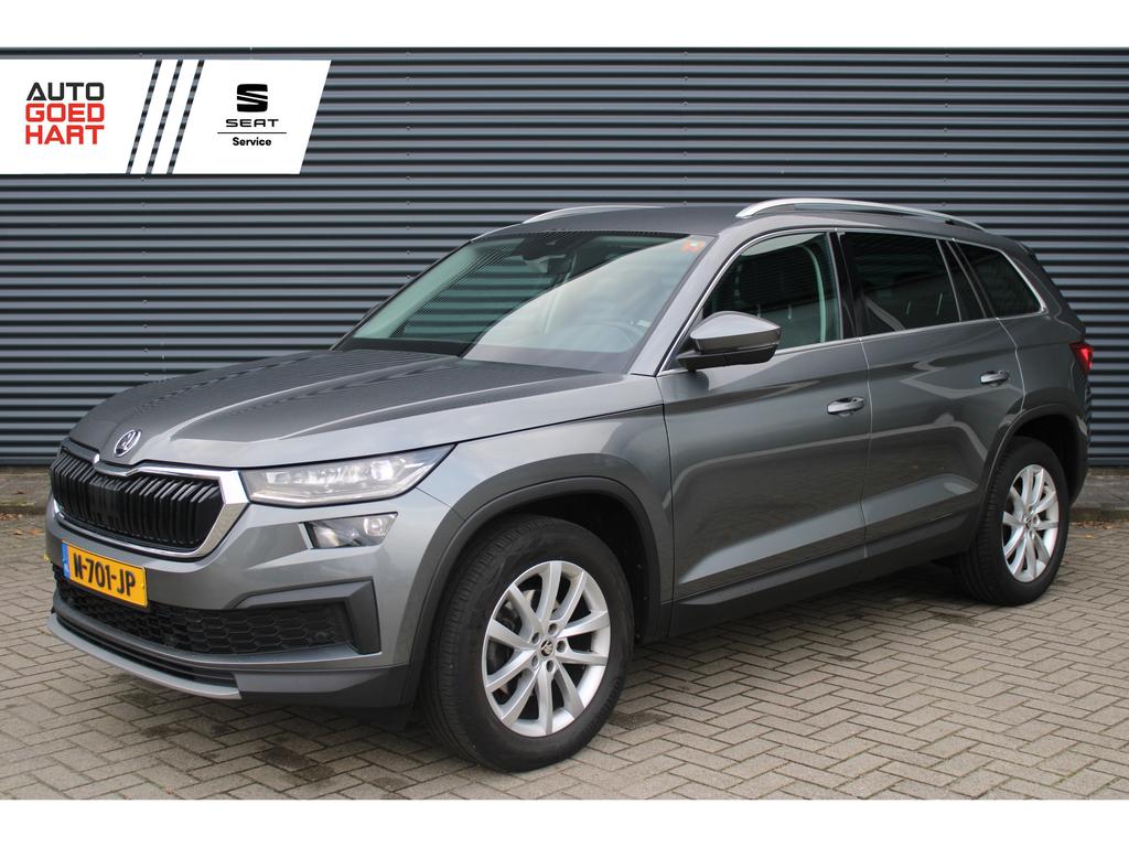 U rijdt gemakkelijk, comfortabel en zonder zorgen met deze ŠKODA Kodiaq. De krachtige benzinemotor van deze auto is gekoppeld aan een automatische transmissie. Deze ŠKODA Kodiaq heeft verwarmbare voorstoelen, voor zowel bestuurder als bijrijder. De strakke sportstoelen hebben niet alleen de looks, maar bewijzen ook hun functie als u wat meer vraagt in de uitdagende bochten. Dat noemen ze nou een ruimtelijk effect: het elektrisch bediende glazen panoramadak. De achterklep opent automatisch met een druk op de knop. Handig als u met volle handen staat. Met z'n allen erop uit - dat kan in dit geval letterlijk ruim opgevat worden, want de derde zitrij is echt een aanwinst. Ook 20 inch lichtmetalen velgen, LED koplampen, dakspoiler, donker getint glas achter, in delen neerklapbare achterbank en LED-achterlichten zijn aan boord.