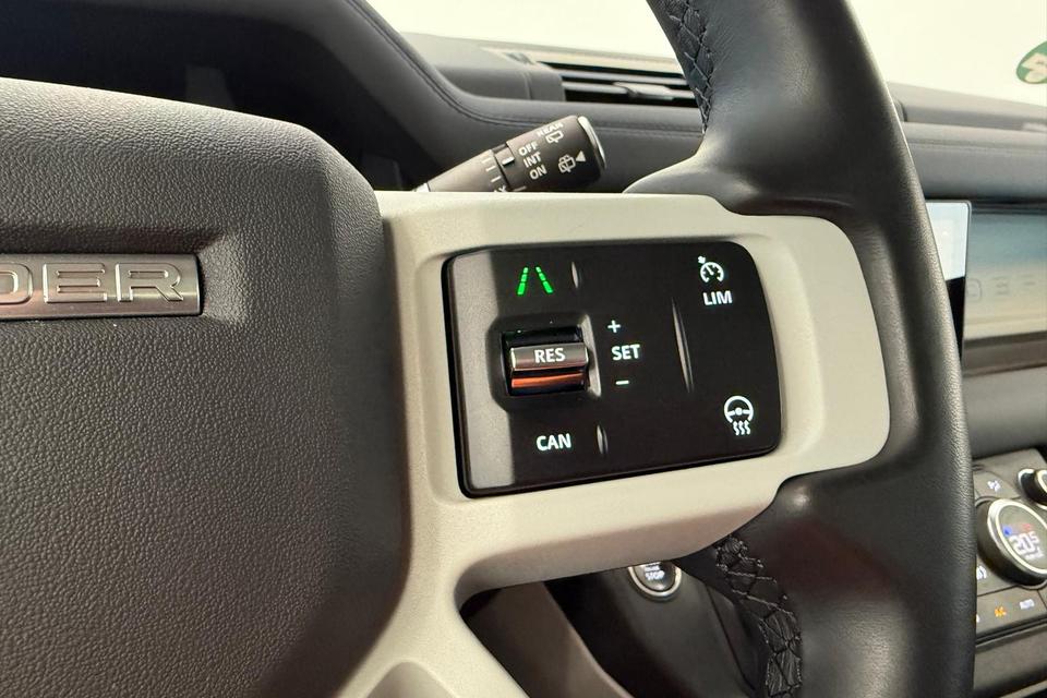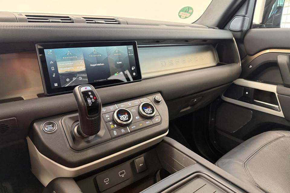 Deze auto is voorzien van innovatieve systemen die u onderweg begeleiden en beschermen. Een belangrijke bijdrage aan de veiligheid onderweg levert de verkeersbord-detectie in deze Land Rover. Deze Land Rover Defender 110 is ook behulpzaam als het gaat om een rechte koers. Het Lane-keeping systeem signaleert en corrigeert als u onbedoeld de rijstrooklijnen dreigt te overschrijden. Op lange ritten voorkomt de vermoeidheidsassistent dat uw concentratie afneemt. U bent mede dankzij dodehoekdetectie, hill hold functie, brake assist en bandenspanningcontrolesysteem steeds veilig onderweg.