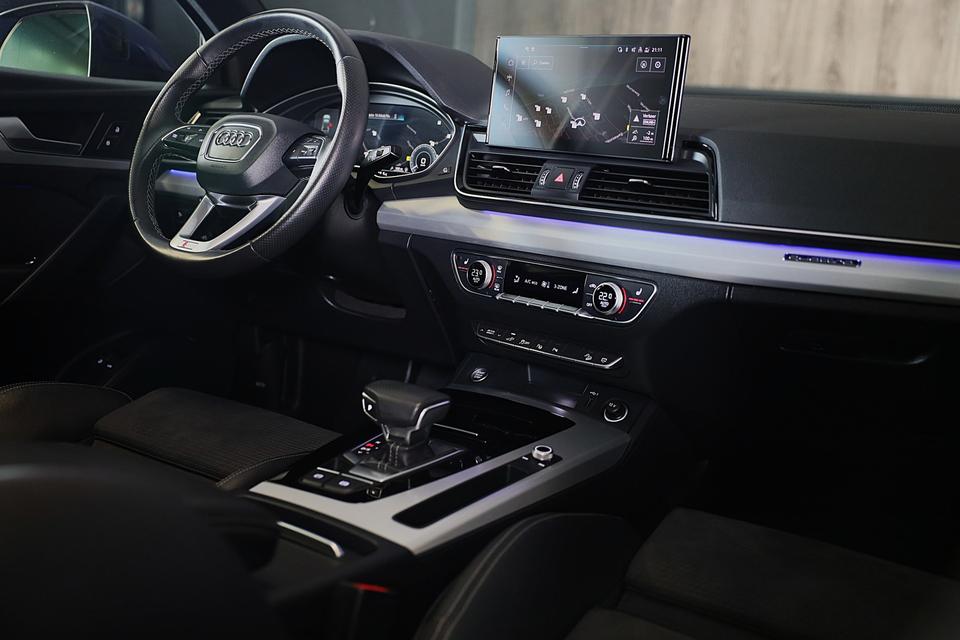 Met een auto als deze Audi Q5 komt u absoluut goed voor de dag. Deze auto wíl gewoon gezien worden: kijk maar naar de sportieve AMG Line Exterieur. De uitstekende prestaties van deze auto komen van de viercilinder motor en de automatische transmissie. Dat noemen ze nou een ruimtelijk effect: het elektrisch bediende glazen panorama dak, dat net zo gemakkelijk open en dicht gaat als de elektrisch bedienbare achterklep. En ondertussen het ware luxegevoel van het lederen interieur. Bestuurder en bijrijder krijgen een warm welkom: de verwarmbare voorstoelen zijn bovendien voorzien van massagefunctie. Zit u goed? De stoelen zijn eenvoudig instelbaar dankzij de elektrische bediening met geheugen. Het elektrische cabriodak opent snel en soepel. Zo geniet u maximaal van elke kilometer die u open rijdt. Daglicht bij nacht? De koplampen met matrix LED-verlichting zorgen ervoor. Tot de uitrusting behoren ook 22 inch lichtmetalen velgen, AMG Line Exterieur, warmtewerend glas, zwarte hemelbekleding, in delen neerklapbare achterbank en LED-achterlichten.