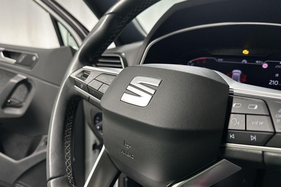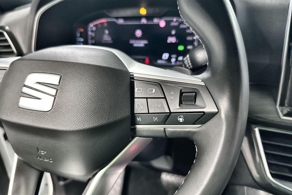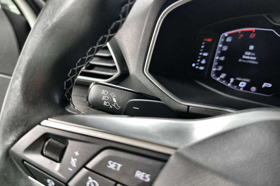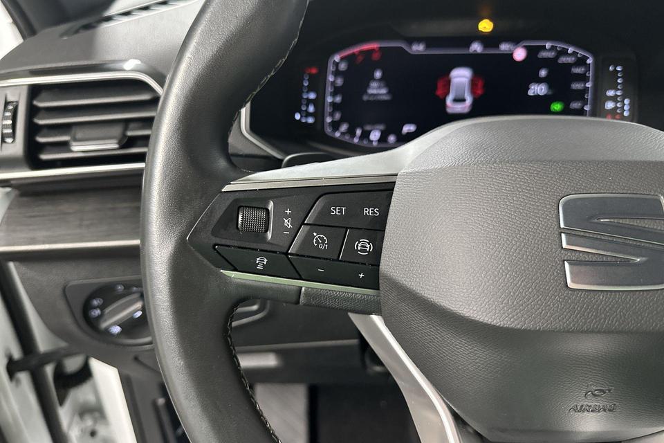 Het rijden met deze SEAT wordt nog meer ontspannen dankzij de innovatieve technieken die onderweg over uw veiligheid waken. In het instrumentarium ziet u tijdens de rit ook de belangrijkste verkeersborden aangegeven, die de auto automatisch voor u leest. Het Lane-keeping systeem registreert permanent of u binnen de lijnen van de rijstrook blijft; dwaalt u onbedoeld af, dan waarschuwt het systeem en corrigeert de koers. Om te voorkomen dat u tijdens lange ritten achter het stuur in slaap valt, is deze auto voorzien van vermoeidheidsherkenning. Dankzij veiligheidsvoorzieningen als dodehoekdetectie, hill hold functie, frontale botsbescherming en bandenspanningcontrolesysteem, bent u steeds veilig onderweg.