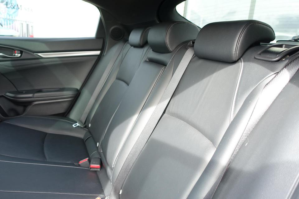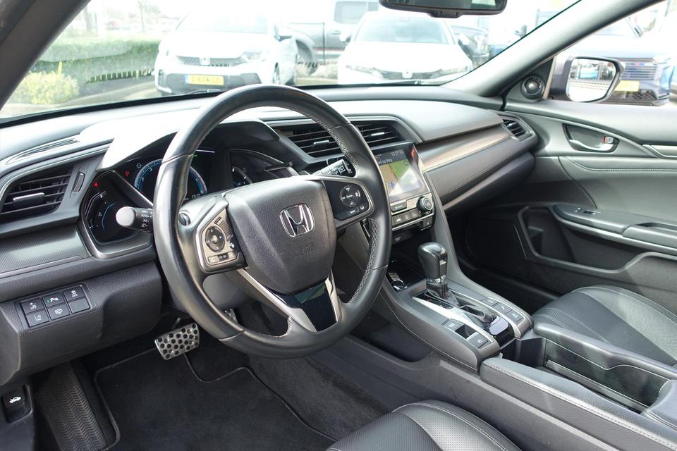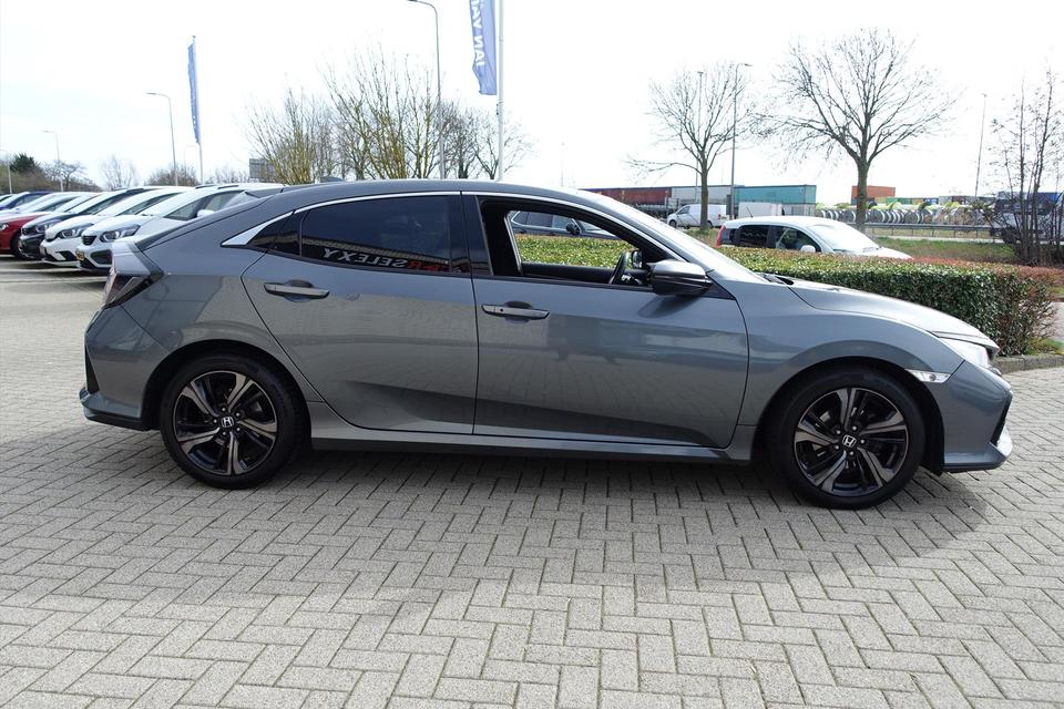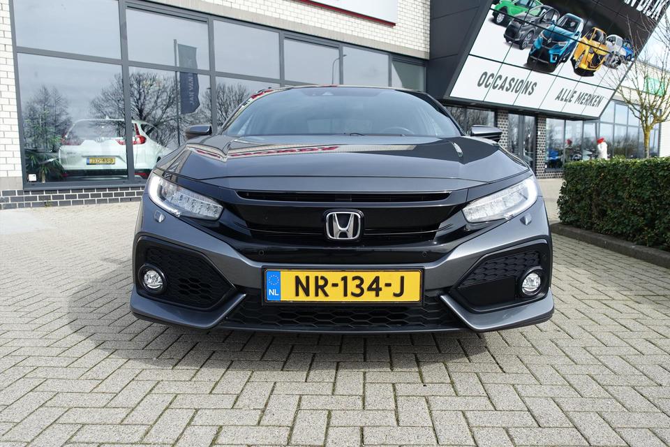 Zoals u mag verwachten van deze Honda Civic is hij uitgerust met een reeks aan actieve veiligheidssystemen. De actuele snelheidslimiet, een inhaalverbod en andere verkeersborden; de verkeersborddetectie ondersteunt u tijdens elke rit. Actieve dodehoekdetectie waarschuwt als een ander voertuig zich in uw dode hoek bevindt. Dit verkleint de kans op een aanrijding. Het risico van een kop-staartbotsing wordt aanzienlijk verminderd door de forward collision warning. De veiligheid van deze auto wordt verder verhoogd door hill start assist, rem-assistent en bandenspanningcontrolesysteem.