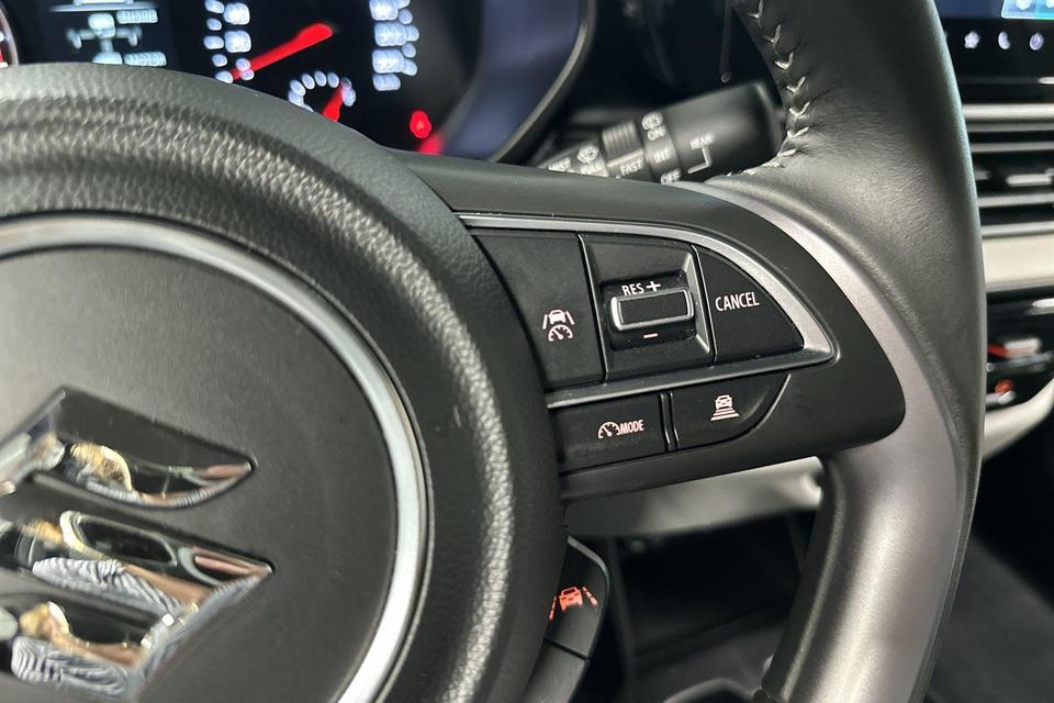 Als bestuurder van deze Suzuki bent u nooit alleen. U wordt onderweg bijgestaan door technologische hulpmiddelen die samen met u de weg in de gaten houden. Als het nodig is, grijpen ze zelfs in, door te remmen of bij te sturen. Verkeersbord-detectie herkent verkeersborden en toont deze op het instrumentarium van de auto. Onbedoeld buiten de rijstrook raken wordt voorkomen door het Lane-keeping systeem. De veiligheidssystemen in deze auto nemen het zelfs waar als de bestuurder tekenen van vermoeidheid vertoont, en waarschuwen dan met een duidelijk signaal. Bovenop deze veiligheidsfeatures heeft deze Suzuki bovendien dodehoekdetectie, hill hold functie, autonoom remsysteem en bandenspanningcontrolesysteem.