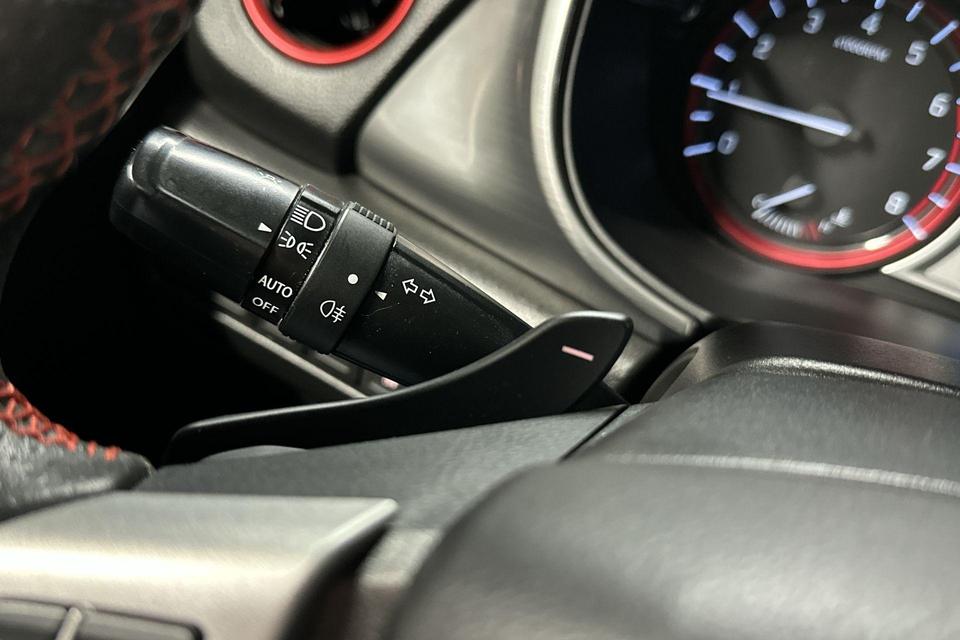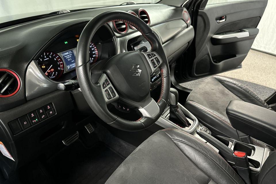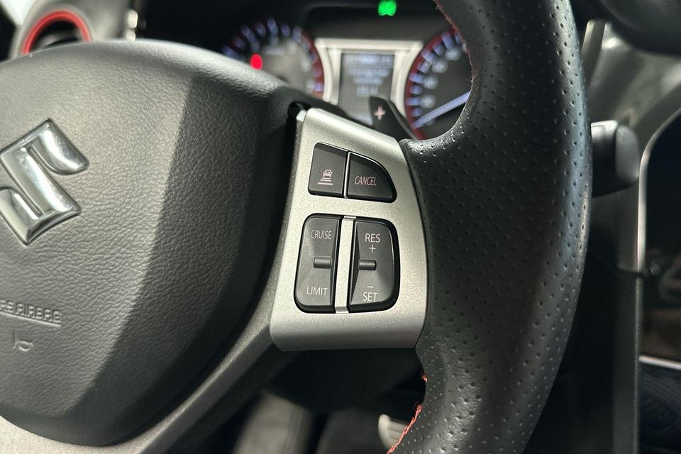 Omdat u nou eenmaal geen ogen in uw achterhoofd heeft, is het altijd lastig om achteruit te rijden zonder brokken te maken. De achteruitrijcamera lost dat probleem op. Als u de adaptive cruise control inschakelt, regelt de auto zelf de snelheid en de afstand tot de auto voor u. Als u regelmatig met een aanhanger of een fietsendrager op pad bent, is de afneembare trekhaak een praktische extra. Het full map navigatiesysteem brengt u soepel en vlot naar uw bestemming. Automatische airconditioning verwarmt of koelt het interieur met een druk op de knop. Deze Suzuki is voorzien van sportstuur met schakelpaddels, regensensor, centrale portiervergrendeling en boordcomputer.