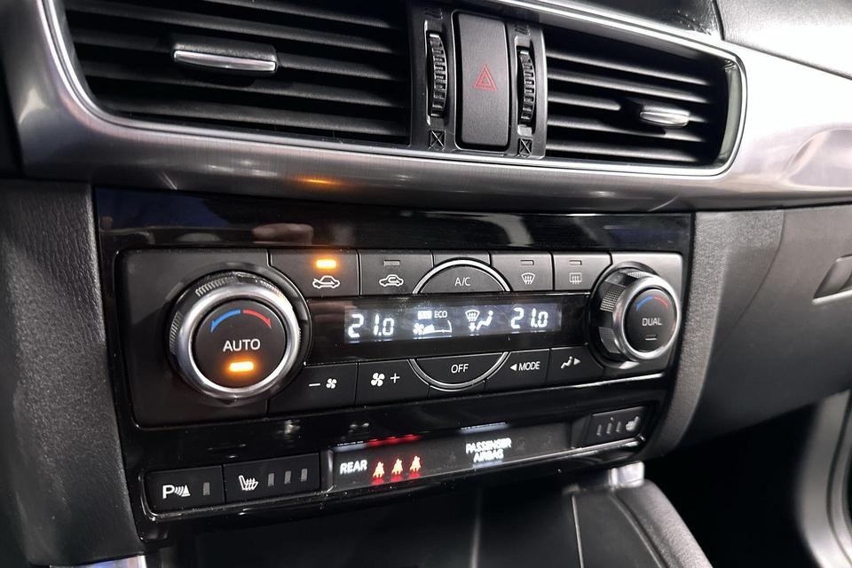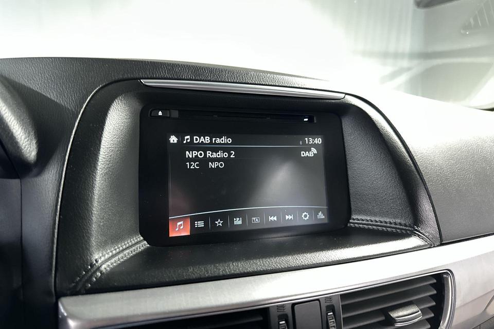 Als u regelmatig met een aanhanger of een fietsendrager op pad bent, is de afneembare trekhaak een praktische extra. Soms wil je goed geluid kunnen voelen! Het high performance audiosysteem bedient u op uw wenken. Electronic climate control regelt volautomatisch de temperatuur. U kiest de gewenste temperatuur en het systeem doet de rest. Hoeveel ruimte u nog heeft bij het insteken? De parkeersensoren laten het weten! Da's gemakkelijk! Het luxeniveau in deze Mazda is niet alleen gericht op comfort, maar ook op uw veiligheid. Tal van sensoren helpen u om de omgeving in de gaten te houden. De automatisch inschakelbare verlichting zorgt dat automatisch de verlichting wordt ingeschakeld als het donker wordt, wat bijvoorbeeld in tunnels erg handig is. En de regensensor zet de ruitenwissers aan zonder dat u eraan hoeft te denken. Natuurlijk behoren full map navigatiesysteem, DAB ontvangst, cruise control, keyless entry, automatisch dimmende binnenspiegel en lederen stuur ook tot de uitrusting van deze complete auto.