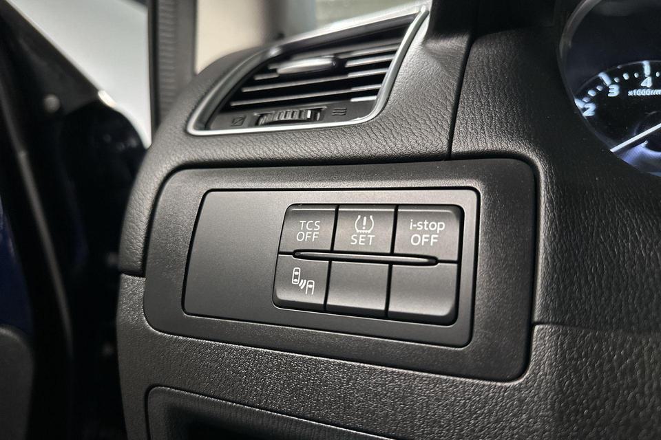 Zoals u mag verwachten van deze Mazda CX-5 is hij uitgerust met een reeks aan actieve veiligheidssystemen. Het Lane-keeping systeem garandeert dat u zich niet onverhoeds buiten de lijnen van de rijstrook begeeft. Hill hold control houdt de handrem vast op een helling. Wegrijden was nog nooit zo gemakkelijk. In deze Mazda vinden we verder een dodehoekdetectie, autonoom remsysteem en bandenspanningcontrolesysteem.