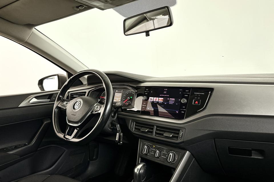 Als u de adaptive cruise control inschakelt, regelt de auto zelf de snelheid en de afstand tot de auto voor u. Ook over uw schouder ziet u onderweg niet alles wat er aan de achterzijde gebeurt. Daarom heeft deze Volkswagen Polo een achteropkomend verkeer waarschuwing. De audiobediening op het stuur draagt bij aan een veilige rit. Geen afleiding, geen tasten - de knoppen zitten onder uw vingers. Parkeersensoren helpen u tijdens het in- en uitparkeren. Natuurlijk is er in deze auto airconditioning aanwezig. En deze auto heeft ook lederen stuur, centrale deurvergrendeling met afstandsbediening, boordcomputer en lederen versnellingspook als standaard uitrusting.