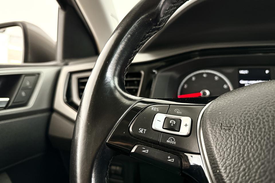Als u de adaptive cruise control inschakelt, regelt de auto zelf de snelheid en de afstand tot de auto voor u. Ook over uw schouder ziet u onderweg niet alles wat er aan de achterzijde gebeurt. Daarom heeft deze Volkswagen Polo een achteropkomend verkeer waarschuwing. De audiobediening op het stuur draagt bij aan een veilige rit. Geen afleiding, geen tasten - de knoppen zitten onder uw vingers. Parkeersensoren helpen u tijdens het in- en uitparkeren. Natuurlijk is er in deze auto airconditioning aanwezig. En deze auto heeft ook lederen stuur, centrale deurvergrendeling met afstandsbediening, boordcomputer en lederen versnellingspook als standaard uitrusting.