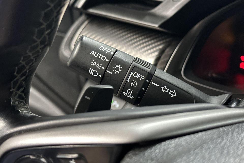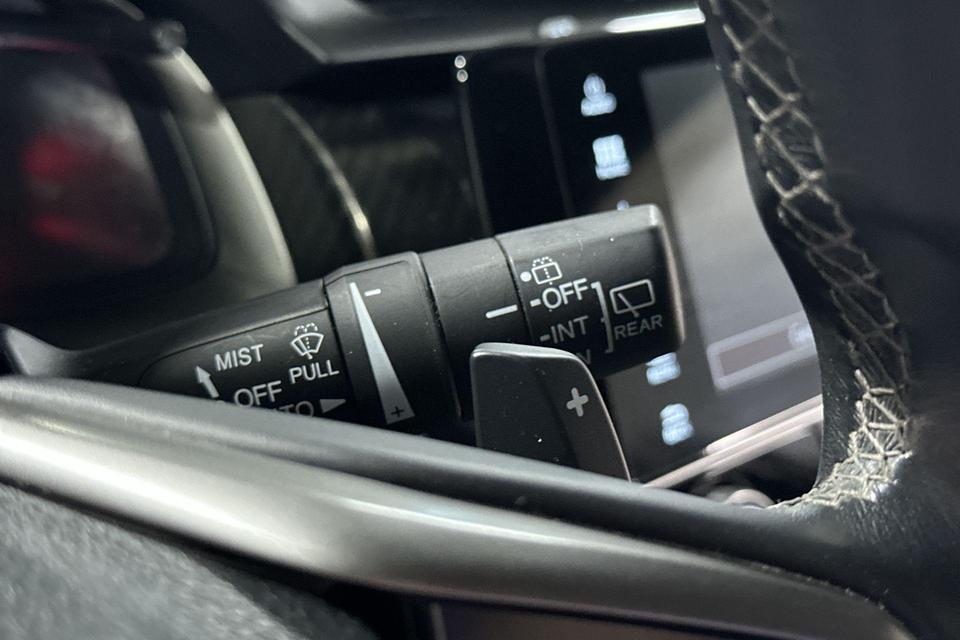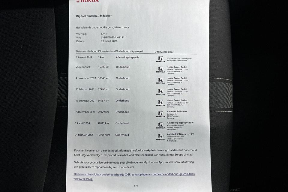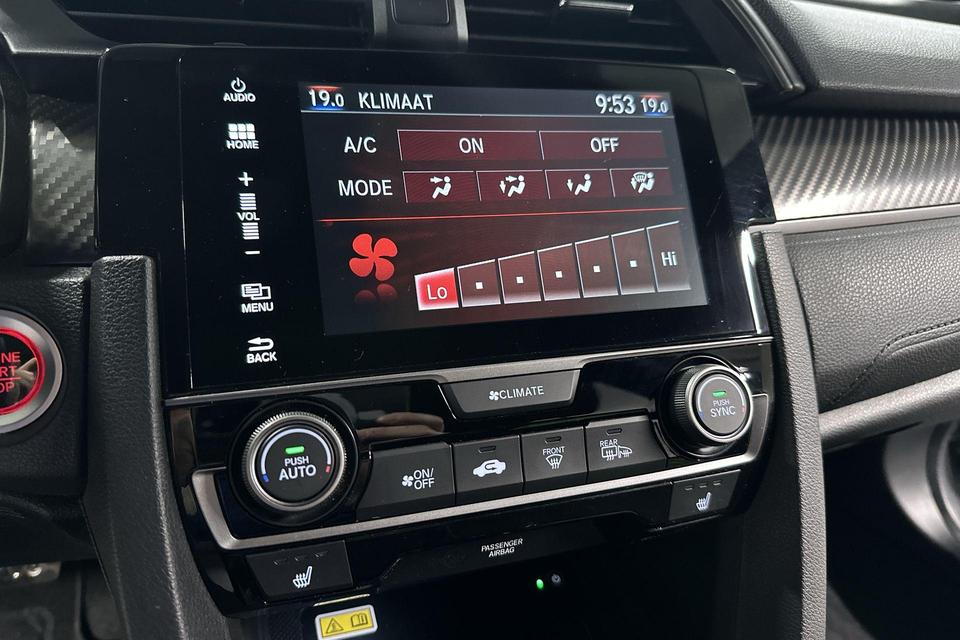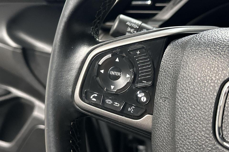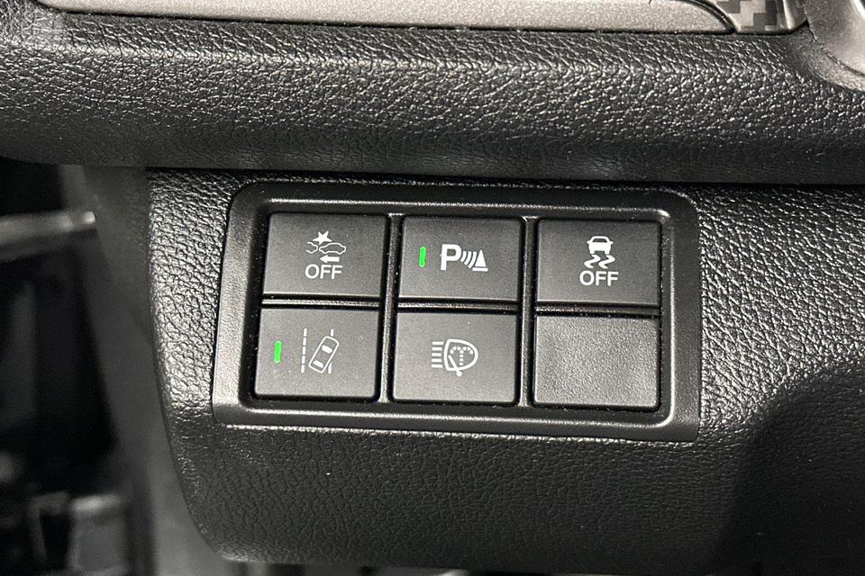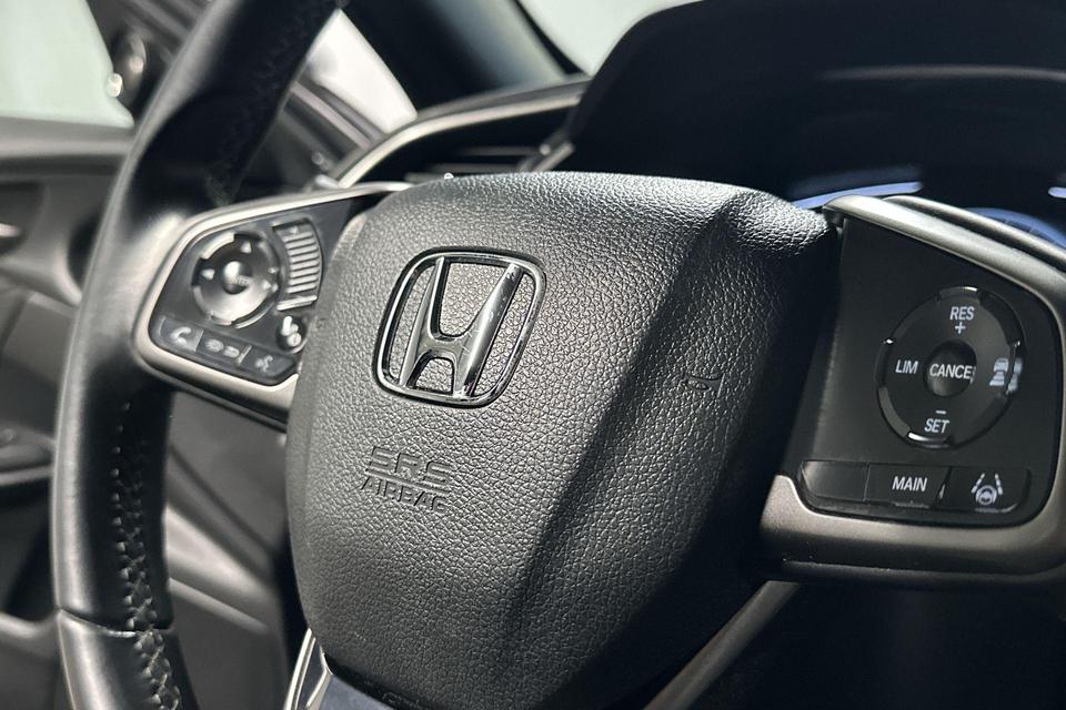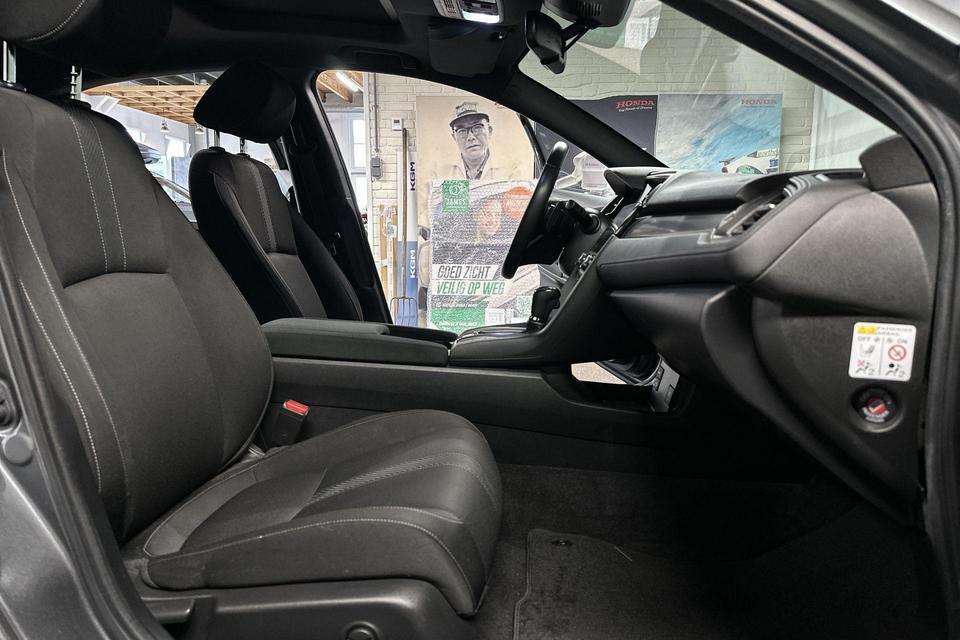 Pragmatisch en veilig als deze auto is, beschikt hij over diverse veiligheidssystemen. In het instrumentarium ziet u tijdens de rit ook de belangrijkste verkeersborden aangegeven, die de auto automatisch voor u leest. Keep your lane? Het Lane-keeping systeem zorgt er automatisch voor. Het risico van een kop-staartbotsing wordt aanzienlijk verminderd door de forward collision warning. Bovenop deze veiligheidsfeatures heeft deze Honda bovendien dodehoekdetectie, hill hold functie, brake assist en bandenspanningcontrolesysteem.