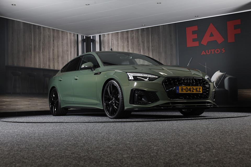 Dynamische styling, zorgvuldig afgewerkt met fraaie materialen en ontworpen met oog voor detail. De Audi A5 Sportback is van binnen en van buiten een toonbeeld van Duits design. S line exterieur styling benadrukt de sportieve functionaliteit van het ontwerp. De aandrijving van deze Audi wordt verzorgd door een viercilinder motor en een automatische transmissie. Deze Audi A5 Sportback komt in de luxe uitvoering, inclusief lederen interieur. Voor het pittige uiterlijk én goed gesteund zitten zorgen de sportstoelen. De achterklep opent automatisch met een druk op de knop. Handig als u met volle handen staat. De koplampen met matrix LED-verlichting zijn het hoogst haalbare op het gebied van autoverlichting. Bij de zeer complete uitrusting van deze auto behoren ook 18 inch lichtmetalen velgen, sportonderstel, warmtewerend glas, zwarte hemelbekleding, in delen neerklapbare achterbank en LED-achterlichten.