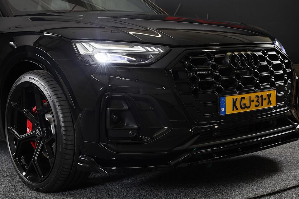 Bij het ontwerpen van de Audi Q5 stonden uw comfort en uw veiligheid centraal. Lekker sportief en een tikkie stoer: de S line exterieur styling geeft een hele dynamische uitstraling. De krachtige motor geeft deze Audi uitstekende prestaties. De hoogwaardige, lederen bekleding benadrukt de kwaliteit van deze Audi. Tijdens gure dagen is het prettig zitten in de verwarmbare voorstoelen. De strakke sportstoelen hebben niet alleen de looks, maar bewijzen ook hun functie als u wat meer vraagt in de uitdagende bochten. Het interieur baadt in daglicht dankzij het elektrisch bediende glazen panoramadak. De bagageruimte is toegankelijk via een comfortverhogende elektrische achterklep. Vergeet halogeen; deze koplampen gebruiken de allernieuwste matrix LED-technologie met maximale lichtopbrengst zonder de tegenligger te hinderen. Natuurlijk behoren open dak, 20 inch lichtmetalen velgen, warmtewerend glas, zwarte hemelbekleding, in delen neerklapbare achterbank en LED-achterlichten ook tot de uitrusting van deze complete auto.