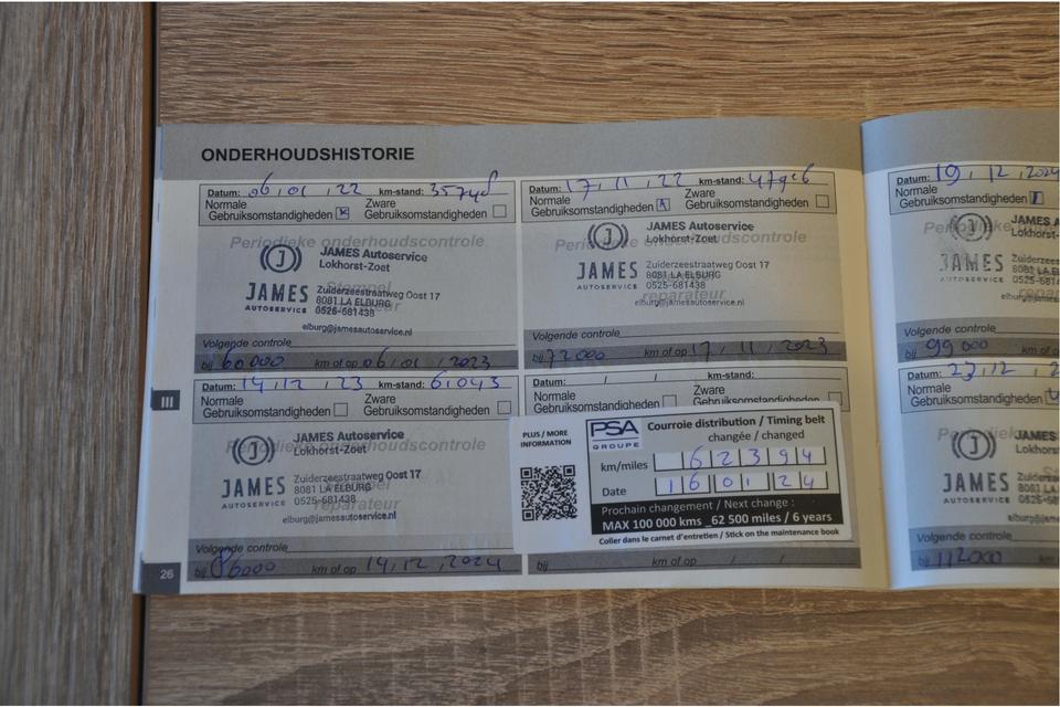 Fabrikant: Autobedrijf Lokhorst-Zoet B.V. Zuiderzeestraatweg Oost 17 8081LA ELBURG, NL 0525681438 http://www.lokhorstzoet.nl verkoop@lokhorstzoet.nlVolledig door ons onderhouden Peugeot 308 SW GT-Line in de enige juiste kleur: Bleu Magnetic. Het betreft hier een origineel Nederlands geleverde auto met nog geen 91.000 km (incl logische N.A.P.). De auto heeft al het onderhoud bij ons gehad waarbij de distributieriem in 2024 bij 62.394 km is vervangen. Daarnaast is de auto rijkelijk voorzien van opties: Apple Carplay/Android Auto, achteruitrijcamera, parkeersensoren rondom, DAB-radio, climate control, cruise control, sportstoelen en een panoramadak. De auto heeft tevens een trekhaak en staat op Michelin CrossClimate allseason-banden, kortom een auto voor nog vele jaren rijplezier.